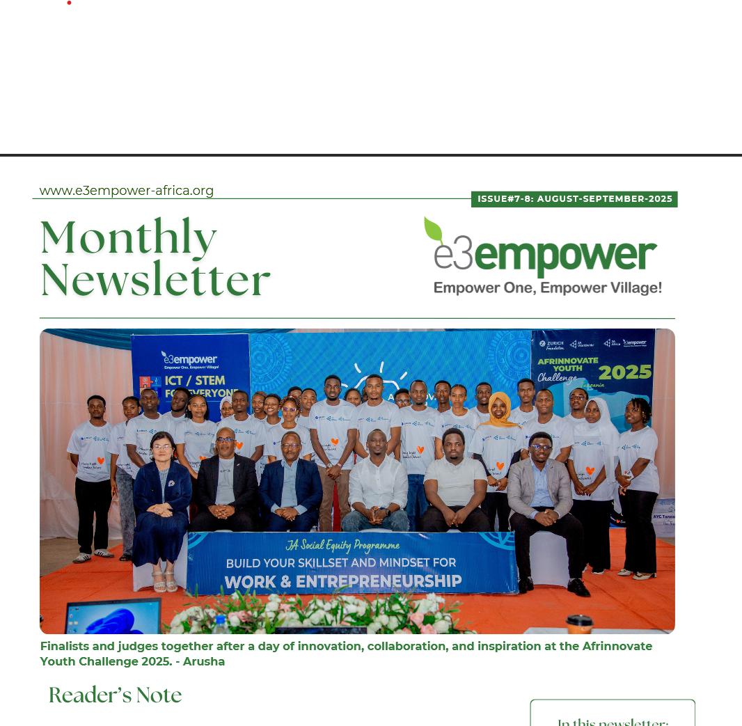 Affrinnovate Youth Challenge 2025: Celebrating Tanzanian Youth Driving Social Impact On 27th September 2025, E3empower Africa successfully hosted the AfrInnovate Youth Challenge, marking the culmination